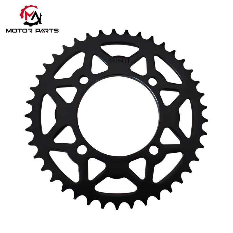 Dibuat dari baja paduan berkekuatan tarik tinggi, sproket ini dibuat untuk lingkungan ekstrem. Kekerasannya yang unggul memastikan bahwa bahkan di bawah beban berat atau kondisi off-road, gigi menahan deformasi dan keausan, sehingga memperpanjang siklus penggantian secara signifikan.